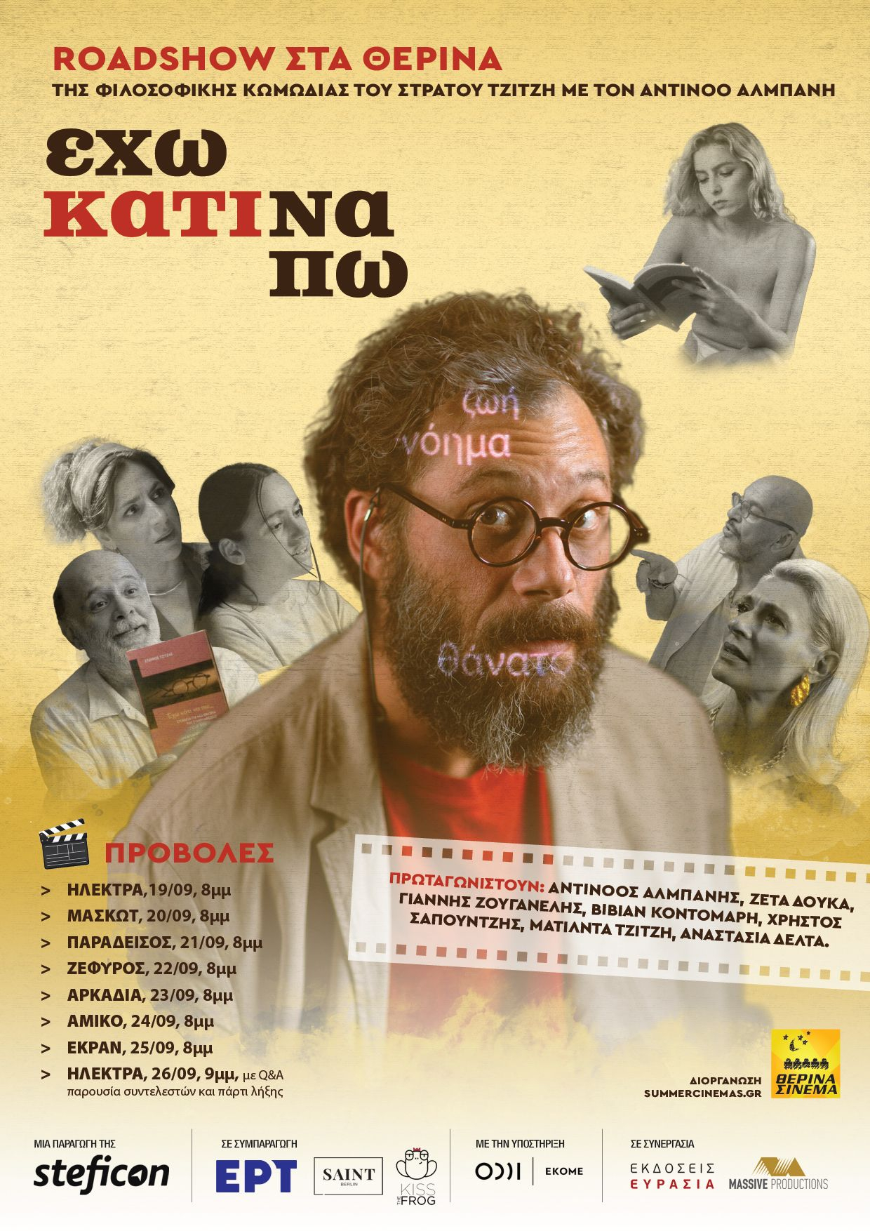 Τα summercinemas.gr ξεκινούν στις 19/09 ένα roadshow της φιλοσοφικής κωμωδίας του Στράτου Τζίτζη «Έχω κάτι να πω» στα θερινά σινεμά.