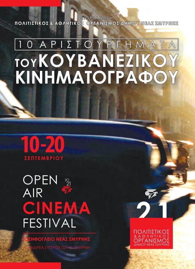 Πιστός στο ραντεβού του για έβδομη συνεχή χρονιά ο Πολιτιστικός Οργανισμός του Δήμου Νέας Σμύρνης διοργανώνει το Open Air Cinema Fesitval, με ένα μοναδικό Αφιέρωμα στον Κουβανέζικο Κινηματογράφο.