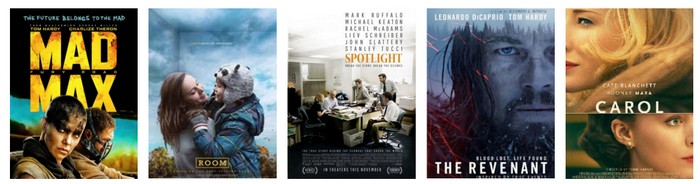 Η μεγάλη βραδιά της απονομής των Χρυσών Σφαιρών πλησιάζει και έχουμε όλες τις κατηγορίες που αφορούν στις κινηματογραφικές παραγωγές που ξεχώρισαν για το 2015, έτσι ώστε να λάβουν μια υποψηφιότητα. Ξεχωρίζει η υποψηφιότητα του Σιλβέστερ Σταλόνε, ο οποίος επιστρέφει ως Ρόκι Μπαλμπόα στο Creed . Από τις ταινίες που βλέπουμε σε διάφορες κατηγορίες ξεχωρίζει το Carol με τέσσερις υποψηφιότητες, Tο μεγάλο σορτάρισμα με τρεις, η Επιστροφή επίσης με τρεις, ενώ το Mad Max έχει αποσπάσει δύο υποψηφιότητες.