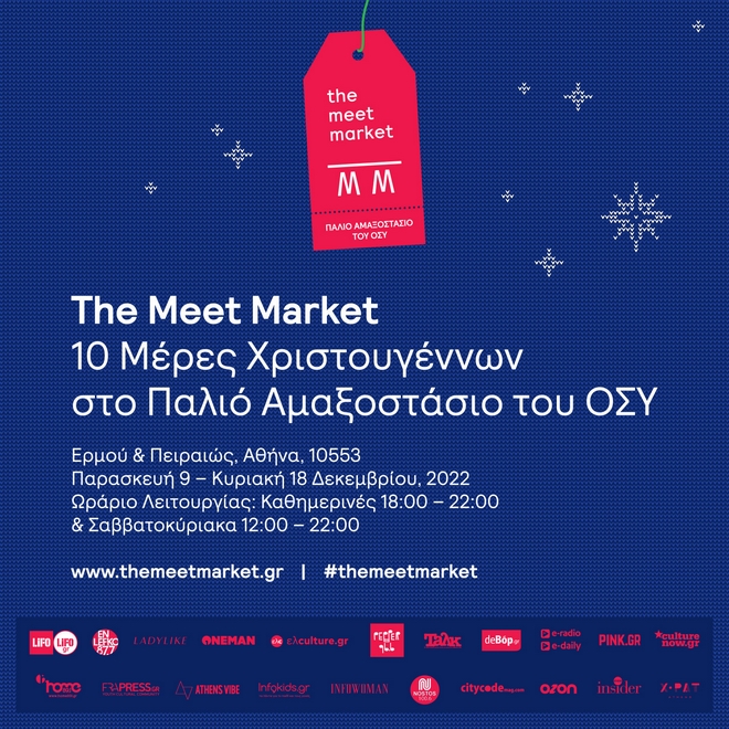 Το Meet Market, η αγαπημένη μετακινούμενη αγορά της Αθήνας, έρχεται για 10 συνεχόμενες ημέρες, από τις 9 έως τις 18 Δεκεμβρίου, στο Παλιό Αμαξοστάσιο του ΟΣΥ στο Γκάζι!