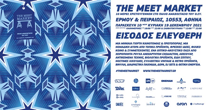Η περίοδος των γιορτών πλησιάζει και το Meet Market περήφανα παρουσιάζει το μεγαλύτερο σε διάρκεια event του μέχρι σήμερα. Για 10 συνεχόμενες ημέρες το Παλιό Αμαξοστάσιο θα γίνει σημείο συνάντησης για περισσότερα από 150 ελληνικά brands ταλαντούχων σχεδιαστών, καλλιτεχνών και μικρών παραγωγών που θα χωριστούν σε δύο διαφορετικά Line Up! Ο πρώτος κύκλος δημιουργών θα παρουσιαστεί από την Παρασκευή 10 εως και την Τρίτη 14 Δεκεμβρίου και από την Τετάρτη 15 ως και την Κυριακή 19 Δεκεμβρίου τη σκυτάλη θα παραλάβουν οι επόμενοι!