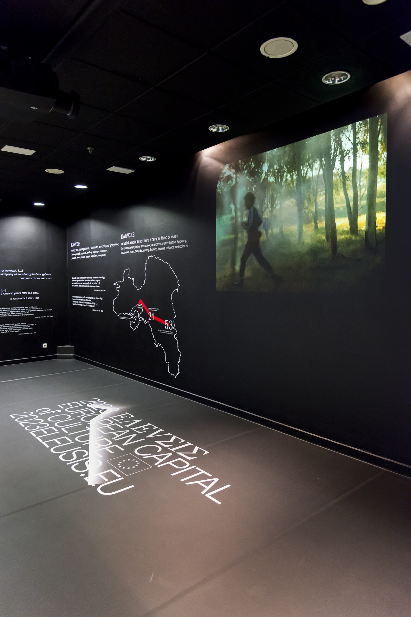 Η έκθεση, σε επιμέλεια της Ερατώς Κουτσουδάκη, επιχειρεί να καλύψει τη νοητή και φυσική απόσταση από το αεροδρόμιο μέχρι την Ελευσίνα, καλώντας τον επισκέπτη να ανακαλύψει, μέσα από κείμενα μεγάλων στοχαστών του ευρωπαϊκού πνεύματος, του Αλμπέρ Καμύ, της Βιρτζίνια Γουλφ και του Γκυστάβ Φλωμπέρ, την αθέατη πλευρά της μικρής αλλά σπουδαίας αυτής πόλης.