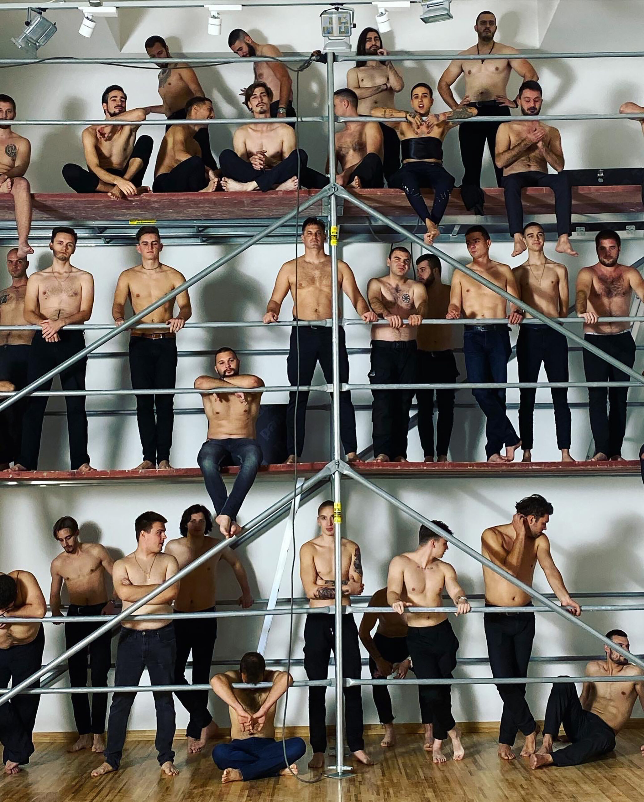 Η έκθεση συγκεντρώνει δύο σύνολα δουλειάς του. Το πρώτο περιλαμβάνει έργα σε ύφασμα, κέντημα και κοστούμια με σαφείς αναφορές στην πολιτιστική του κληρονομιά, τις προσωπικές του εμπειρίες και τις κοινωνικές επιταγές. Κατασκευάζει σημαίες που διαδηλώνουν για τις σύγχρονες ανάγκες και επιθυμίες των νέων, πάνω σε παραδοσιακά οικιακά αντικείμενα και υφάσματα, αναδεικνύοντας την αντιπαράθεση της ουκρανικής του κληρονομιάς και της σύγχρονης ζωής του. Ταυτόχρονα σχεδιάζει ρούχα και στολές εργασίας με εκκλησιαστικά και παραδοσιακά υφάσματα, εμπνευσμένα από παραδοσιακές φορεσιές.