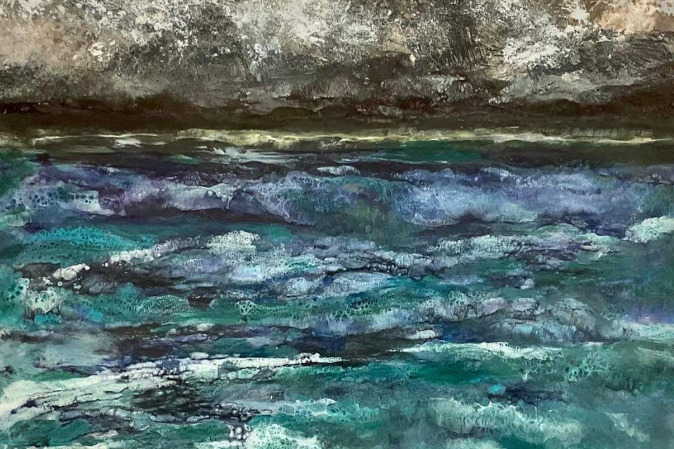 Σε μια πρωτότυπη εγκατάσταση, η θάλασσα ως στικτό οργανικό σώμα, ως τόξο ουράνιο αναρίθμητων αποχρώσεων του μπλε και ως κέλυφος μυστήριο πλασμάτων και μύθων, παρουσιάζεται θριαμβική, χωρίς την ανάγκη αφηγηματικών μέσων. Πλασμένη με ένα συναρπαστικό φάσμα διαφορετικών και αναπάντεχων χροιών και τόνων που ανάγουν στην αρχαία ελληνική ζωγραφική, αντιμετωπίζεται από τη ζωγράφο ως πρωτόπλαστο εύρημα και δημιουργεί έναν μυθώδη κάμπο διαφορετικών ψυχογραφικών στιγμών και διηνεκών ωκεάνιων συντεταγμένων.