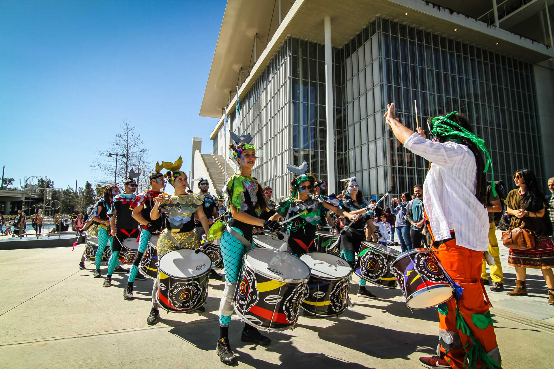 Την Κυριακή η γνώριμη πολυπολιτισμική μπάντα κρουστών Bloco Swingueira μεταφέρει την εκρηκτική ενέργειά της με ρυθμικές εμφανίσεις σε διάφορα σημεία του Πάρκου Σταύρος Νιάρχος. Στο Ξέφωτο, η μπάντα πνευστών Hasta Brassta σκορπάει θετικά vibes με διασκευές διάσημων κομματιών, ενώ το συγκρότημα Hermaphrodite’s Child φέρνει το rock’n’roll των 50’s και των 60’s στο σήμερα, με το ανάλογο ντύσιμο και πνεύμα!