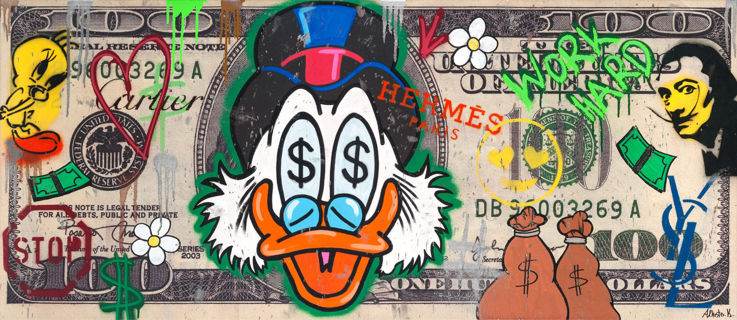 Τα cartoons έχουν περάσει από τις ζωές όλων μας. Μου αρέσει να συνδυάζω μέσα από την street-pop art αισθητική μου, τους κύριους χαρακτήρες της δικής μου γενιάς, χαρακτήρες που όμως δεν θα ξεχαστούν ποτέ και έχουν περάσει από γενιά σε γενιά.»