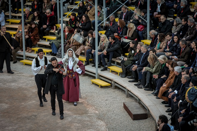 “Επιφορτίστηκε με μια επιπλέον ισχυρή πρόκληση, να γεφυρώσει και να διασυνδέσει αρμονικά το τρισχιλιετές μυθικό και ιστορικό παρελθόν της με το πιο πρόσφατο της εσωτερικής μετανάστευση. Της προσφυγιάς. Των δύσκολων εργασιακών σχέσεων με το σύγχρονο παρόν της” είπε η υπουργός Πολιτισμού, Λίνα Μενδώνη.