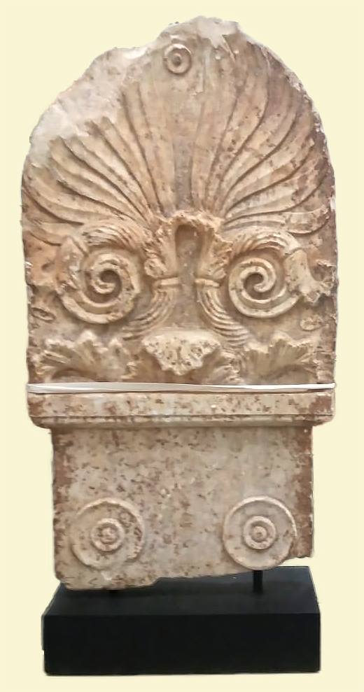 Σύμφωνα με το ΥΠΠΟΑ, «πρόκειται για ένα τυπικό παράδειγμα μαρμάρινης αττικής στήλης Κλασικών χρόνων με ανθεμωτή επίστεψη. Στον κορμό της, αποδίδονται ανάγλυφα δύο ρόδακες και κάτω από αυτούς διακρίνεται αρχή ονόματος, πιθανόν του νεκρού: ΕΣΤΙ[ΑΙΟΣ]. Η στήλη χρονολογείται περί το 340 π.Χ. και προέρχεται αναμφίβολα από κάποιο αρχαίο νεκροταφείο της Αττικής, καθώς ο συγκεκριμένος τύπος αποτελεί αποκλειστικότητα των αττικών εργαστηρίων γλυπτικής».