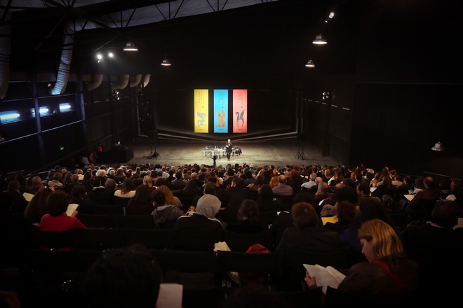 Με αφορμή το αφιέρωμα στη Φόλκσμπύνε, προσκεκλημένος του Φεστιβάλ είναι ο σπουδαίος Γερμανός θεωρητικός του θεάτρου Χανς-Τις Λέμαν. Συγγραφέας της μελέτης-ορόσημο Postdramatisches Theater (1999, Μεταδραματικό θέατρο), ο Λέμαν στο μάστερκλάς του θα αναλύσει την έννοια του μεταδραματικού θεάτρου και τις διάφορες παρανοήσεις του όρου, καθώς και τη συμβολή της Φόλκσμπύνε στη διεθνή σκηνή.