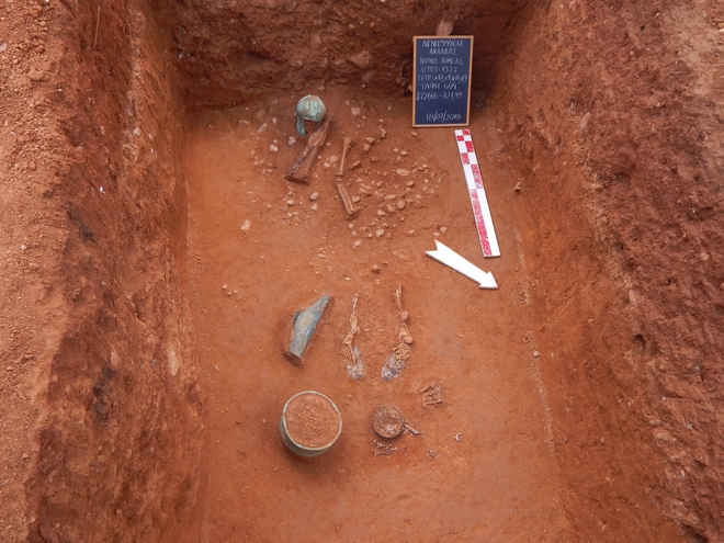 «Στην περιοχή, στην οποία επικεντρώθηκε η φετινή ανασκαφή, ξεχώριζαν έξι ταφές οριοθετημένες με ταφικό περίβολο από σχιστόπλακες και αργούς λίθους, διαστάσεων κατά μέσο όρο 4,00μ.Χ3,50μ. Οι νεκροί στις συγκεκριμένες ταφές είχαν εναποτεθεί σε λάκκους, βάθους περίπου δύο μέτρων από το επίπεδο του περιβόλου ή σε ορθογώνιους κτιστούς με αργολιθοδομή τάφους, με λιθόστρωτο δάπεδο. Πρόκειται δυστυχώς για συλημένες ταφές, οι οποίες εξαιτίας του μνημειακού τους μεγέθους προκάλεσαν το ενδιαφέρον των τυμβωρύχων», τονίζει η ανακοίνωση του ΥΠΠΟΑ.