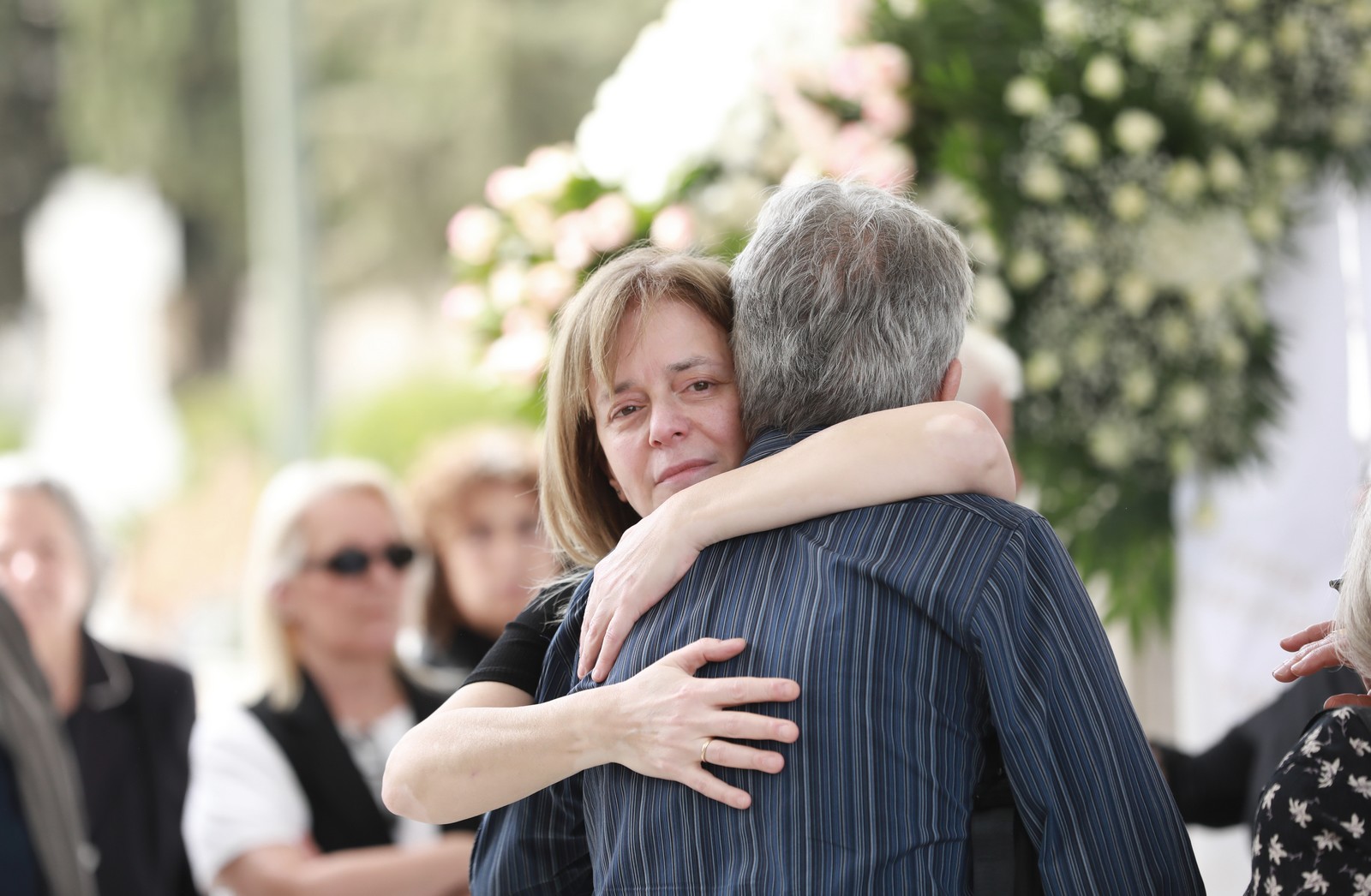 Στην κηδεία έδωσε το “παρών”, επίσης, η Ξένια Καλογεροπούλου, η πρώτη σύζυγος του ηθοποιού, με την οποία υπήρξε παντρεμένος από το 1963 έως το 1972. Η ίδια ήταν ιδιαίτερα συγκινημένη, με την Μαρίνα Ψάλτη να την αγκαλιάζει την στιγμή που την είδε.