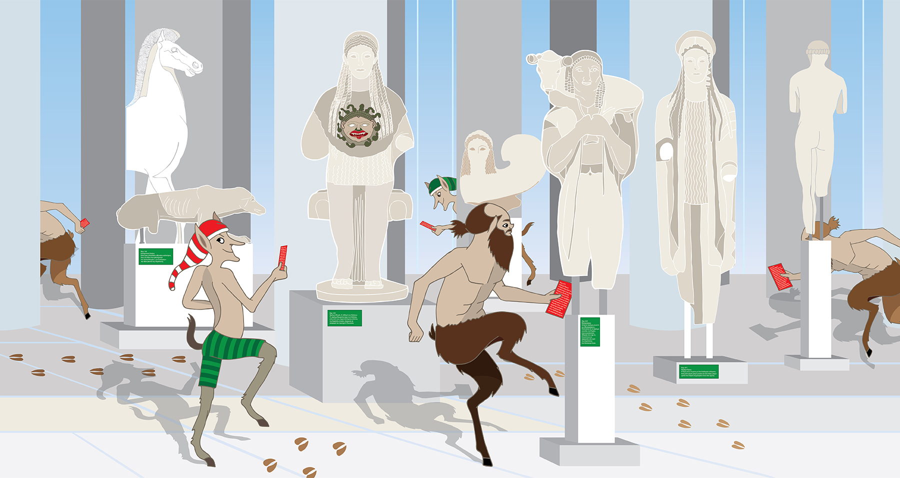 Φέτος τα Χριστούγεννα καλλικάντζαροι εισβάλλουν στο Μουσείο Ακρόπολης! Εκεί συναντούν διάφορα σκανταλιάρικα πλάσματα της αρχαιότητας, όπως τους Σατύρους και τον Πάνα και… ανακατεύουν τις λεζάντες των εκθεμάτων, με αποτέλεσμα οι επισκέπτες να παίρνουν λάθος πληροφορίες! Στο πρόγραμμα αυτό, υπό μορφή διαδραστικού παιχνιδιού, οι αρχαιολόγοι του Μουσείου ζητούν τη βοήθεια των παιδιών για να διορθώσουν το χάος και να κρατήσουν μακριά τους ταραξίες.