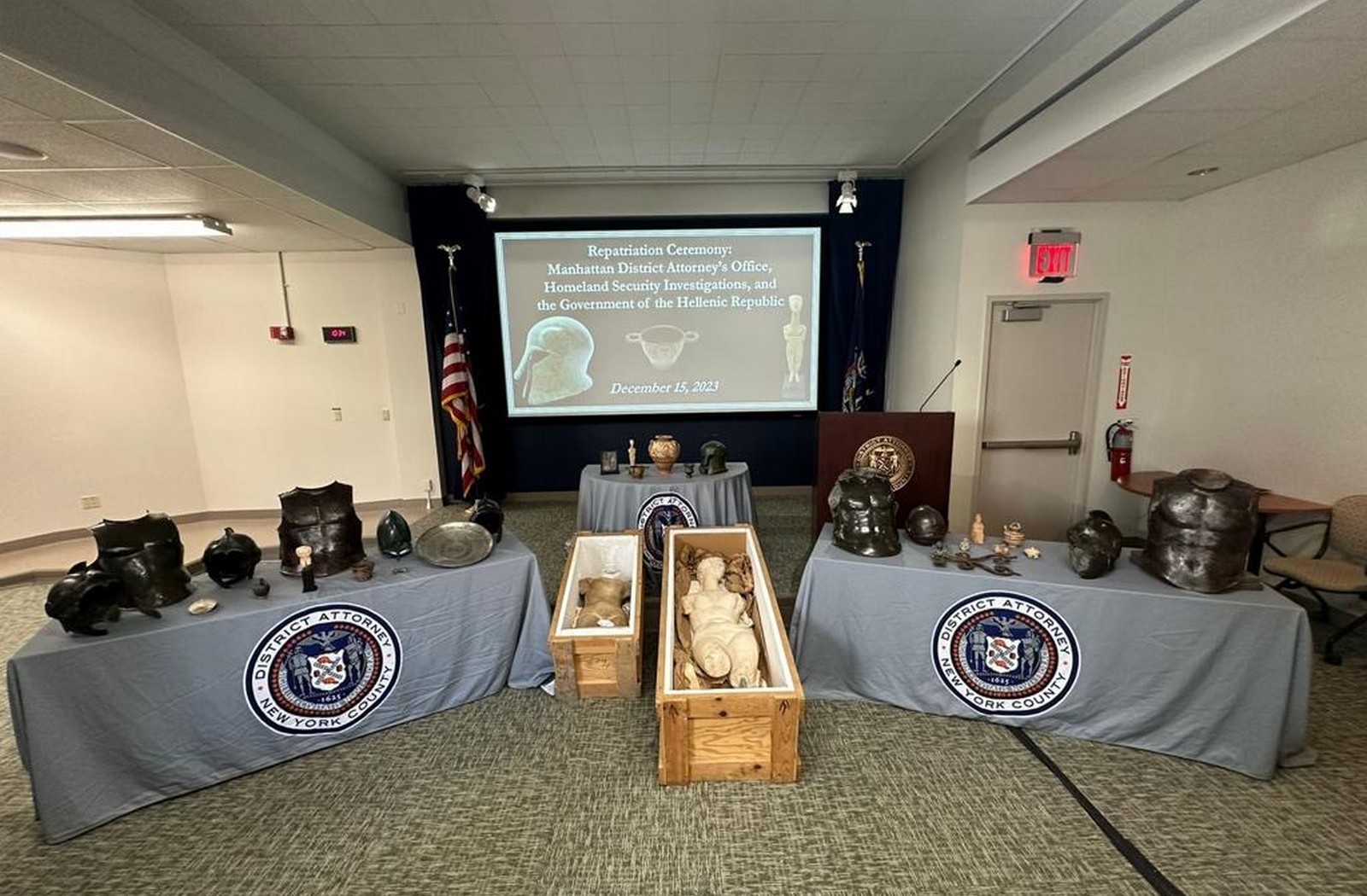 Τη σημασία της συνεργασίας και την βαθιά ευγνωμοσύνη της Ελλάδας προς την Εισαγγελία του Μανχάταν και την Homeland Security Investigation εξέφρασε ο Γενικός Γραμματέας Πολιτισμού και δήλωσε τη βούληση του Υπουργείου Πολιτισμού να συνεχιστεί η στενή συνεργασία που έχει αποφέρει εξαιρετικά αποτελέσματα μέχρι σήμερα.