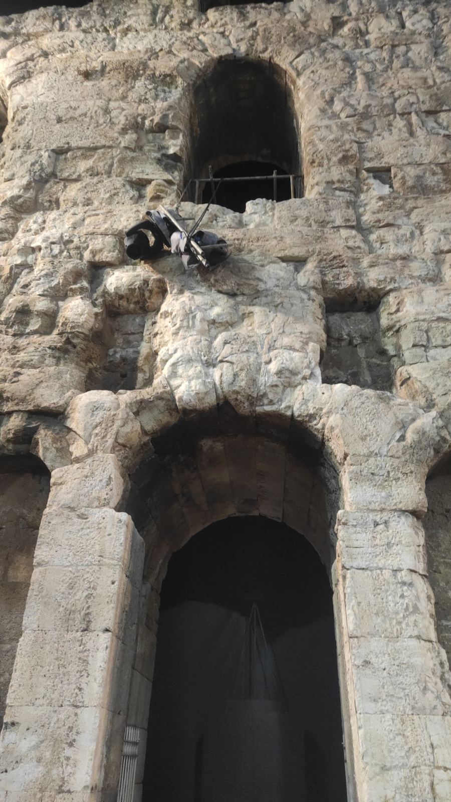 Σήμερα Πέμπτη 21 Ιουλίου και περί της ώρας 1:00 μετά τα μεσάνυχτα, έσπασε η βάση στην οποία αναρτώνται οι προβολείς στο Ηρώδειο Θέατρο και «κρεμάστηκαν» τα ρομποτικά φωτιστικά σώματα από τα καλώδια τροφοδοσίας. Υπήρξε ένας τραυματισμός και μόνο από τύχη γλίτωσαν οι άνθρωποι που εργαζόντουσαν εκείνη τη στιγμή κάτω από τους προβολείς, καθώς συγκρατήθηκε με μεγάλη προσπάθεια από τους τεχνικούς. Να επισημάνουμε δε ότι οι σωλήνες στήριξης είναι φθαρμένοι με αποτέλεσμα να έχει «αδυνατίσει» σημαντικά η αντοχή τους. Σε παρόμοια κατάσταση βρίσκεται και η υπόλοιπη εγκατάσταση των βάσεων στήριξης των προβολέων. Πολλές φορές οι τεχνικοί στο θέατρο έχουν επισημάνει την κακή κατάσταση και την επικινδυνότητα της εγκατάστασης.