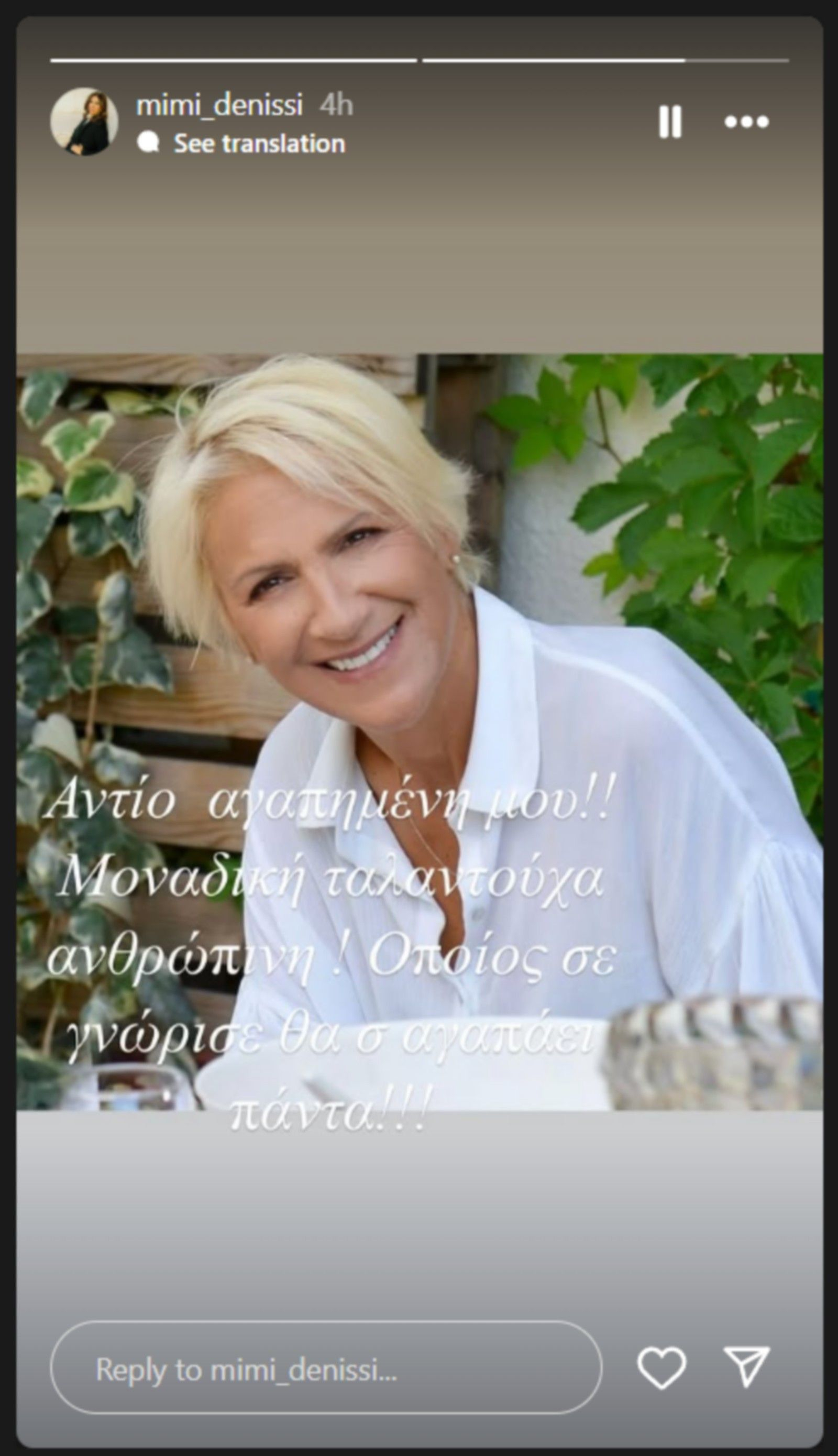 «Η ζωή είναι κακές και καλές στιγμές.Κάποιες καλές τις ζούμε τώρα μαζί.Αύριο μπορεί να έρθουνε κακές.Είμαστε έτοιμοι γιά όλα!»