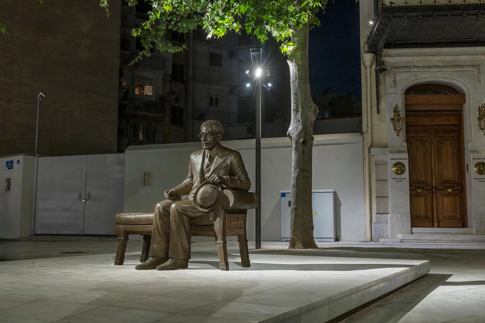 Από τις 28 Απριλίου, ανήμερα της επετείου γέννησης και θανάτου του Αλεξανδρινού ποιητή, το γλυπτό του Καβάφη στέκει εκεί στον πεζόδρομο, μπροστά από την Ωνάσειο Βιβλιοθήκη και την Onassis Mandra, ως δωρεά του Ιδρύματος Ωνάση στον Δήμο Αθηναίων. Ένα έργο του Τηνιακού γλύπτη και πανεπιστημιακού Πραξιτέλη Τζανουλίνου, που επιχειρεί κάτι πιο δύσκολο από την αναπαράσταση: να αποδώσει έναν μαγικό εσωτερικό κόσμο.