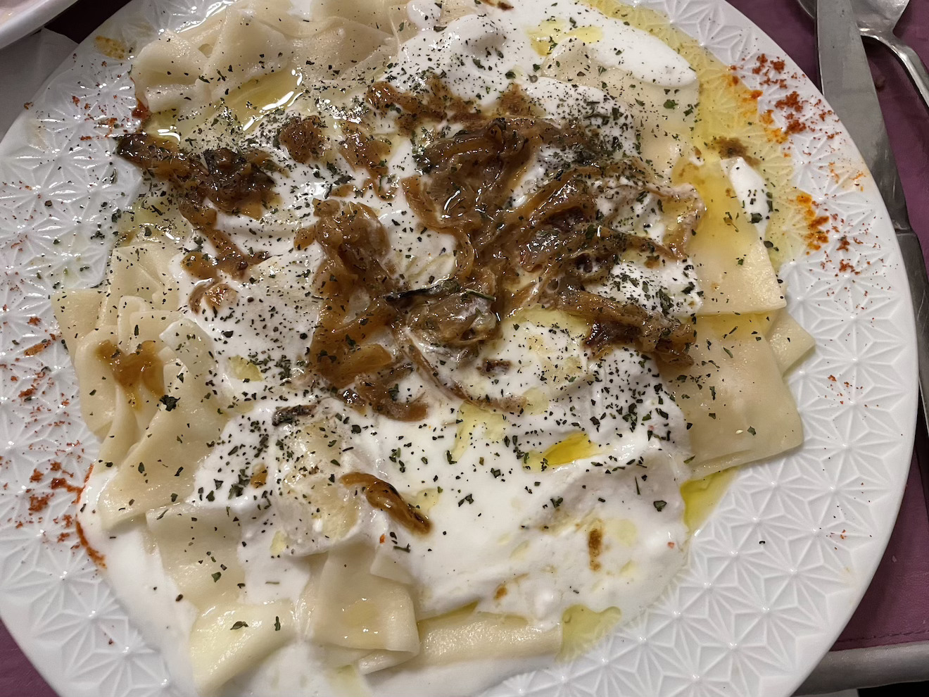 Αυτές τις ημέρες βρίσκομαι στη βορειοανατολική Τουρκία. Η νύχτα στο εστιατόριο Gastrobar στην πόλη Καρς που βρίσκεται στους πρόποδες του Καύκασου θα μου μείνει ανεξίτηλη. Ντόπιοι μουσικοί να παίζουν ήχους ανάμεικτους από τους πολιτισμούς που πέρασαν από την πολύπαθη αυτή περιοχή. Ήχοι τουρκικοί, αρμένικοι, από το Ιράν και το Αζερμπαϊζάν ικανοί να σε ταξιδέψουν παντού. Το Hangel mantı, το κύριο πιάτο που δοκιμάσαμε στο 1855 Gazi Rest αποδεικνύει πως “εν τη απλότητι η … γεύση”. Χειροποίητα ζυμαρικά σαν μεγάλες χωριάτικες χυλοπίτες, φρέσκο βούτυρο, γιαούρτι σκόρδου, ψητή κόκκινη πιπεριά και κρεμμύδι καραμελωμένο. Κάτι τρομερά απλό και απίστευτα νόστιμο.
