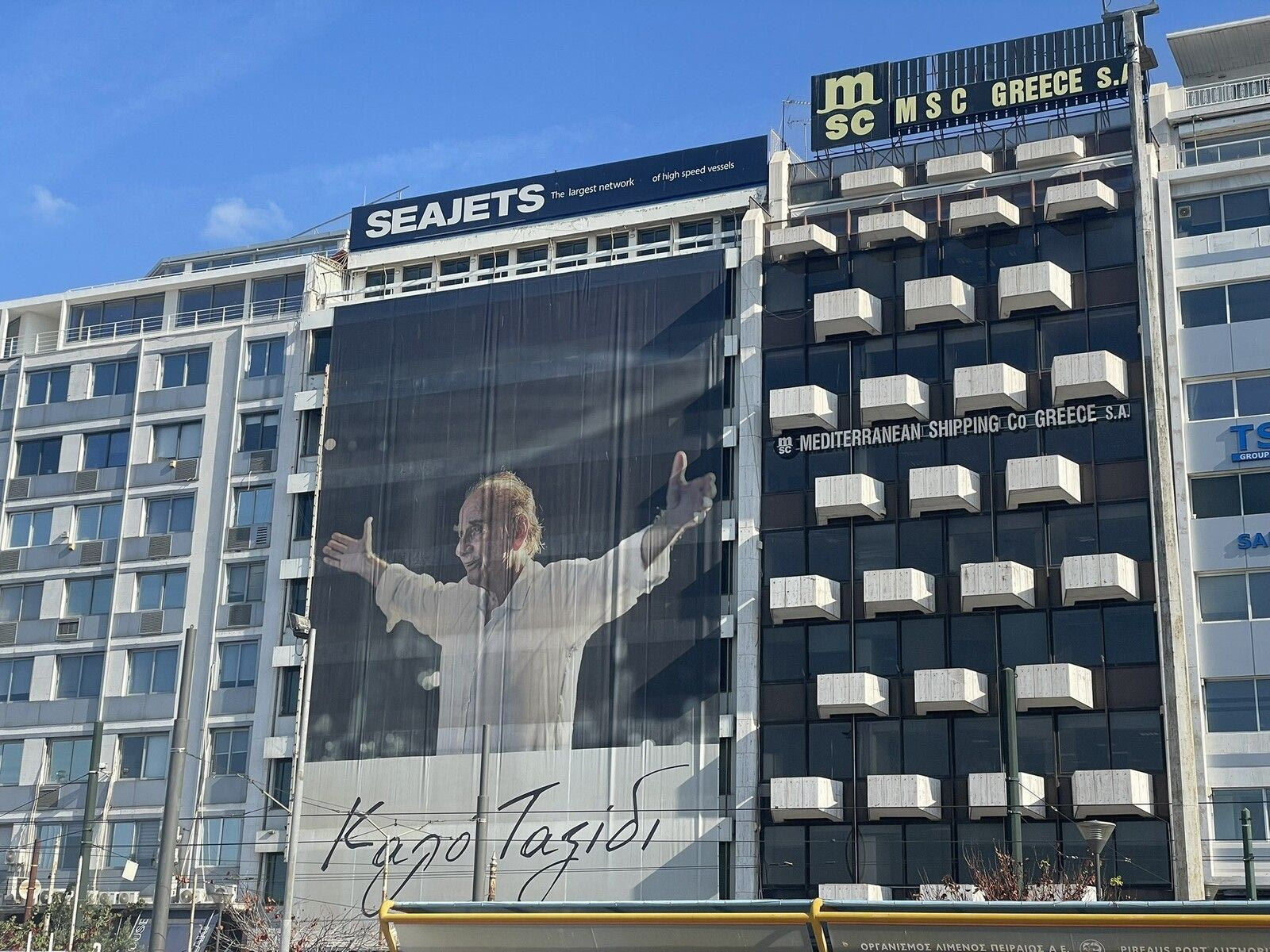 Δεν ξέρω πόσο καιρό είναι κρεμασμένο στο λιμάνι του Πειραιά ένα τεράστιο πανό με έναν κύριο με ορθάνοικτη αγκαλιά να μας εύχεται – ή του ευχόμαστε- “Καλό ταξίδι”, αλλά με φρίκαρε όταν έμπαινα στο καράβι και την είδα. Ρωτώντας έμαθα πως είναι εφοπλιστής που έχει φύγει από τη ζωή. Και φρίκαρα ακόμη περισσότερο.