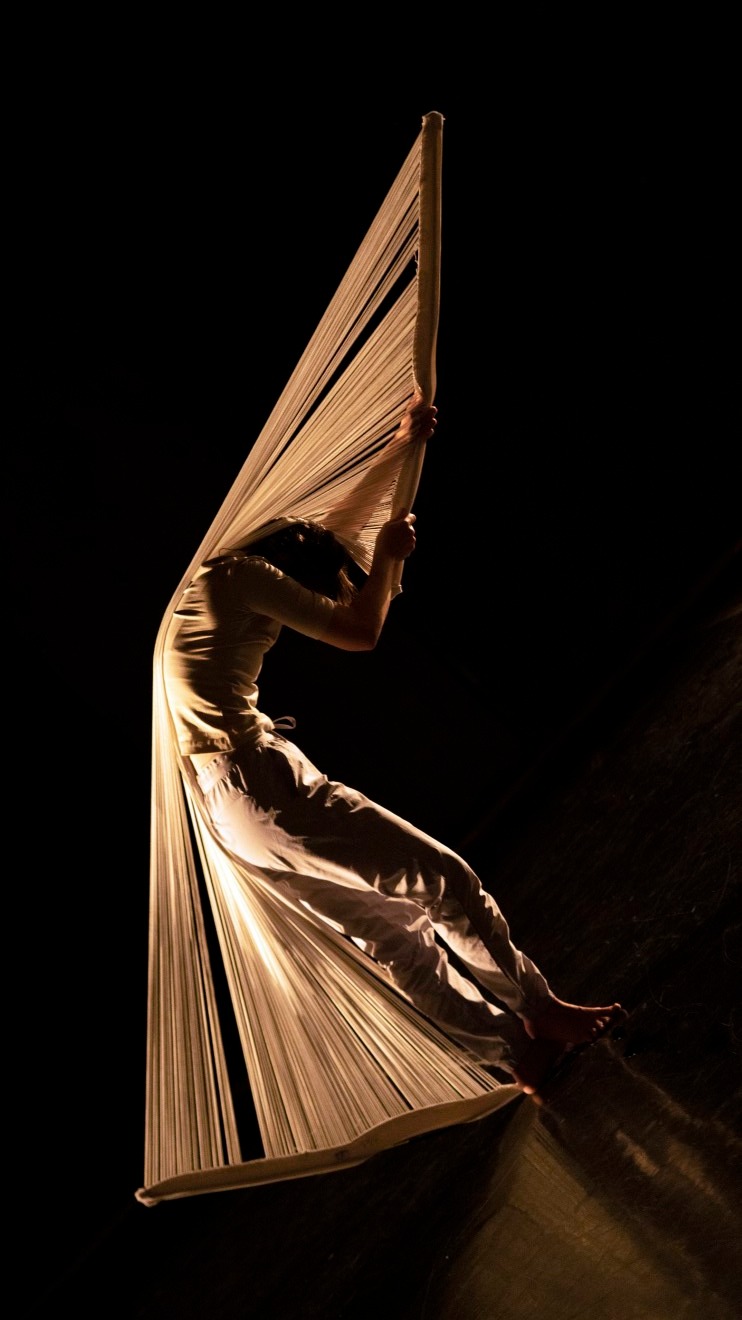 Το LOOM παρουσιάζεται στις 3, 4, 5, 10, 11 και 12 Φεβρουαρίου στις 9:00 μ.μ. στο Μέγαρο Μουσικής Αθηνών και συνδυάζει μεταβαλλόμενες κατασκευές με σύγχρονο χορό, λόγο, σύνθεση ήχου και διαδραστικές βιντεοπροβολές, είναι δηλαδή μια διαμεσική παράσταση.