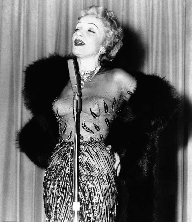 Marlene Dietrich in first night club appearance, Dec. 18, 1953. (AP Photo) AP Photo