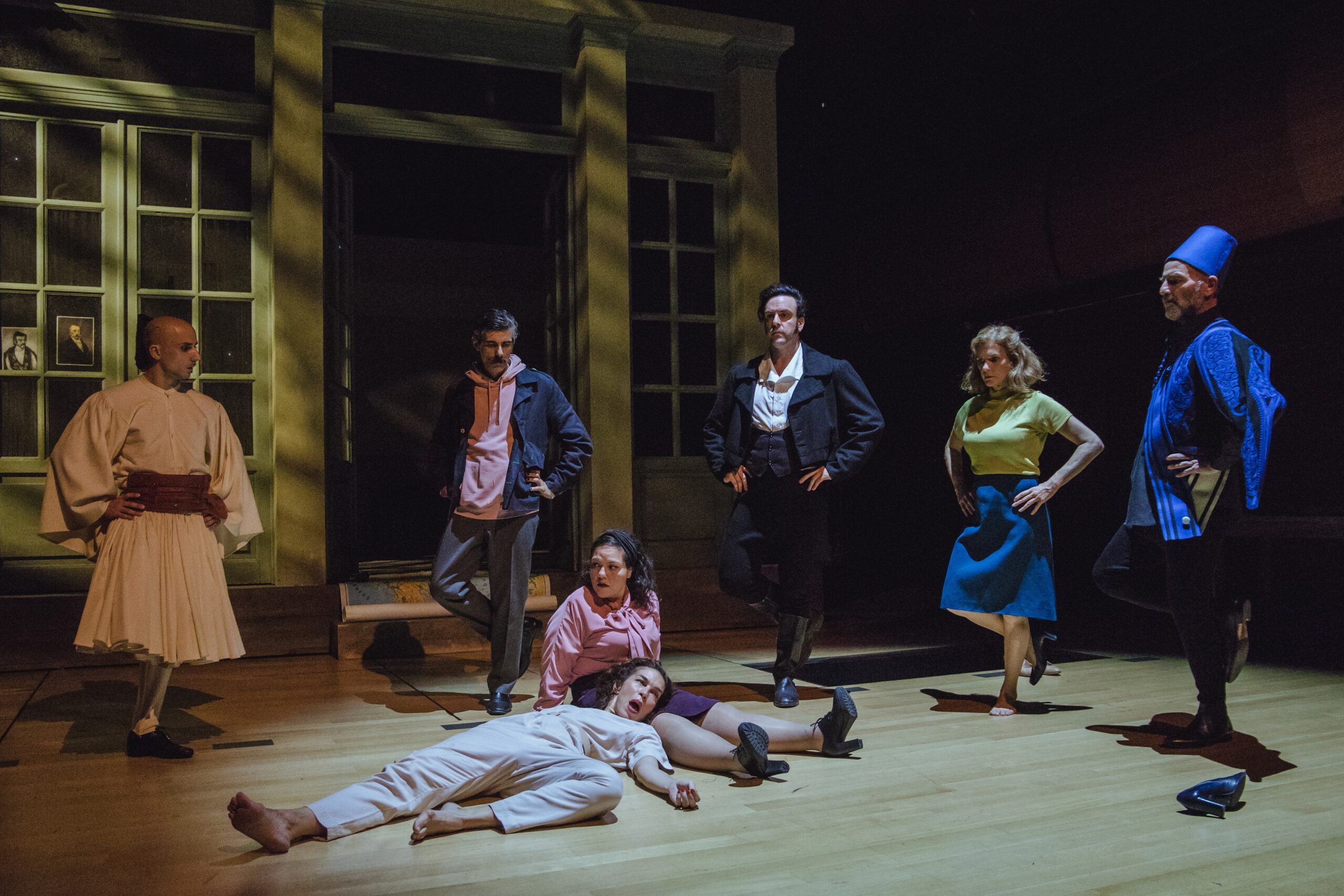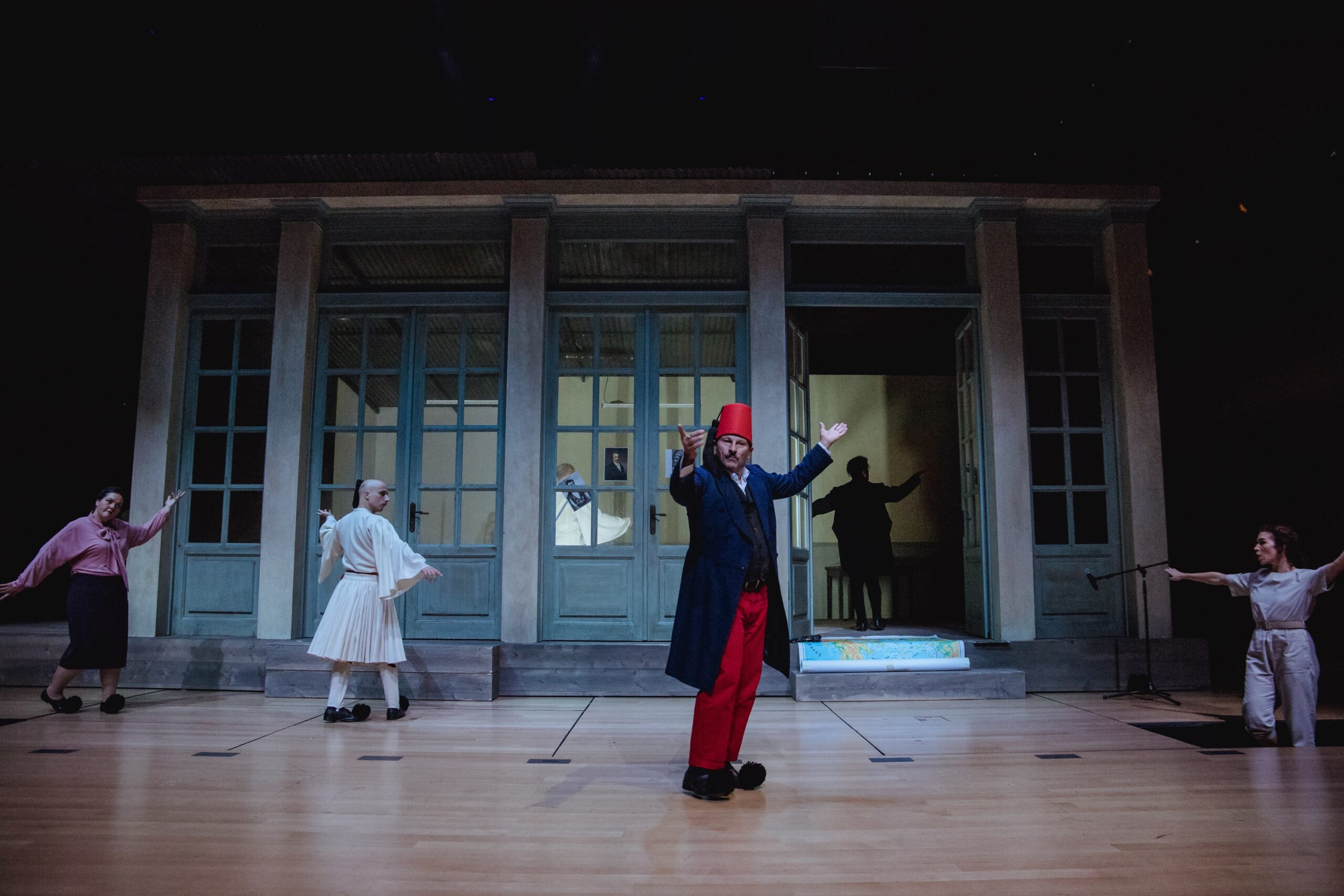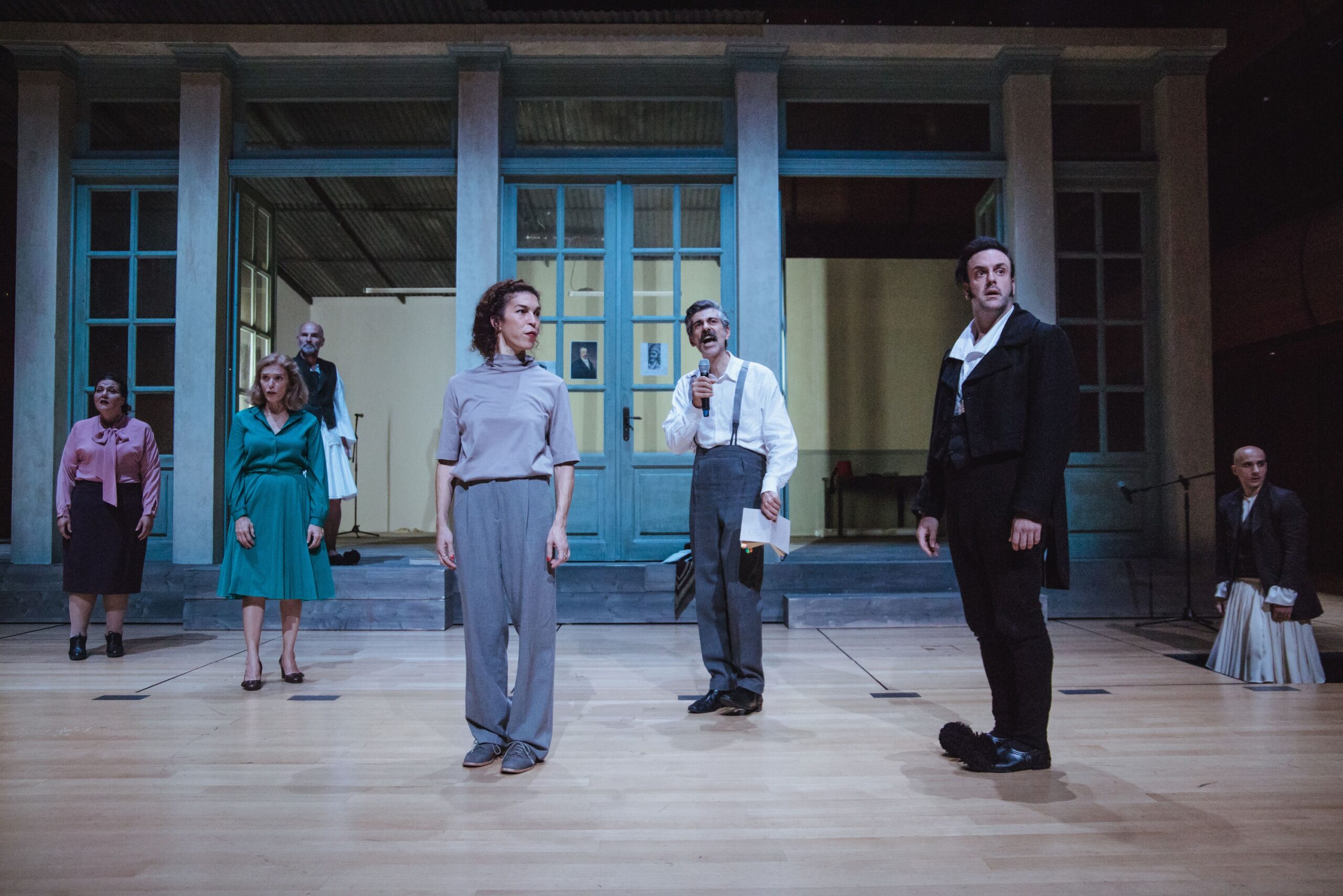Εκείνο, ωστόσο, που κυριαρχεί είναι μάλλον ένα πικρό χαμόγελο. Γιατί πίσω από όλα τα αρκούντως αντισυμβατικά και φαινομενικά προχώ που συμβαίνουν επί σκηνής, συνοδεία μινιμαλιστικής μουσικής που ερμηνεύει ζωντανά ο συνθέτης Αντώνης Ανισέγκος, τρέχει σαν άυλη ραχοκοκαλιά ένα αδιάκοπο σχόλιο για όσα συναποτελούν την Ελλάδα –συν ή πλην 200 χρόνια. Η σκηνή όπου οι επτά χαρακτήρες, πίσω από την «αγγελοπουλική» ρετρό τζαμαρία του σκηνικού, «συνεδριάζουν» διαφωνώντας αενάως και μεγαλοφώνως είναι τόσο, μα τόσο οικεία. Και διαχρονική.