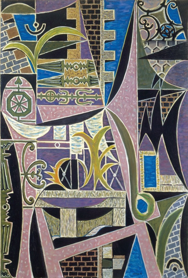 9. Νίκος Χατζηκυριάκος – Γκίκας (1906-1994) Μπαλκόνι με οριζόντιες κολόνες (1954, Λάδι σε καμβά)