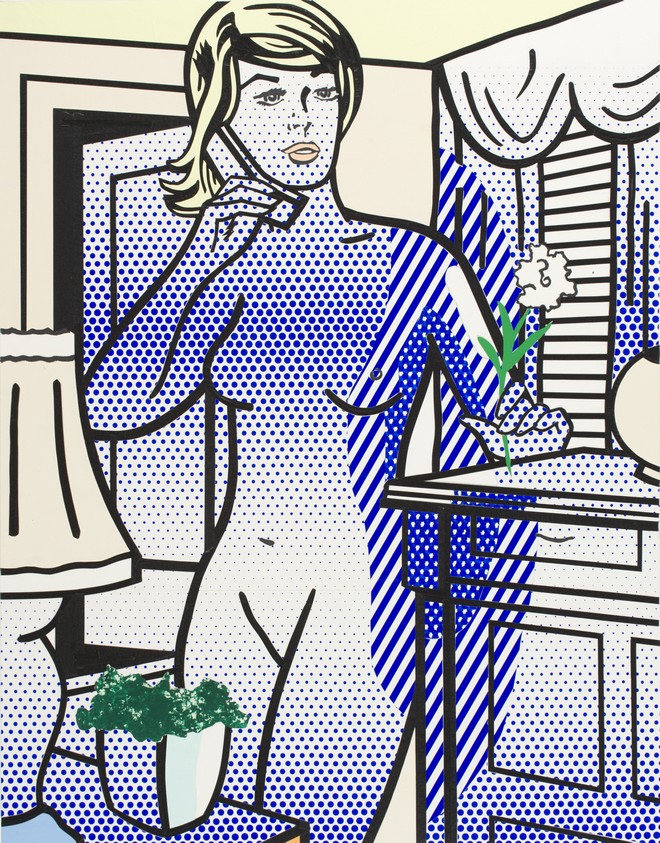 8. Roy Lichtenstein (1923-1997) Γυμνό με λευκό λουλούδι, κολάζ για το «Γυμνό με κίτρινο λουλούδι» (1994, Ταινία, μολύβι, ακρυλικήμπογιά, μαρκαδόρος και τυπωμένο χαρτί σε χαρτόνι)