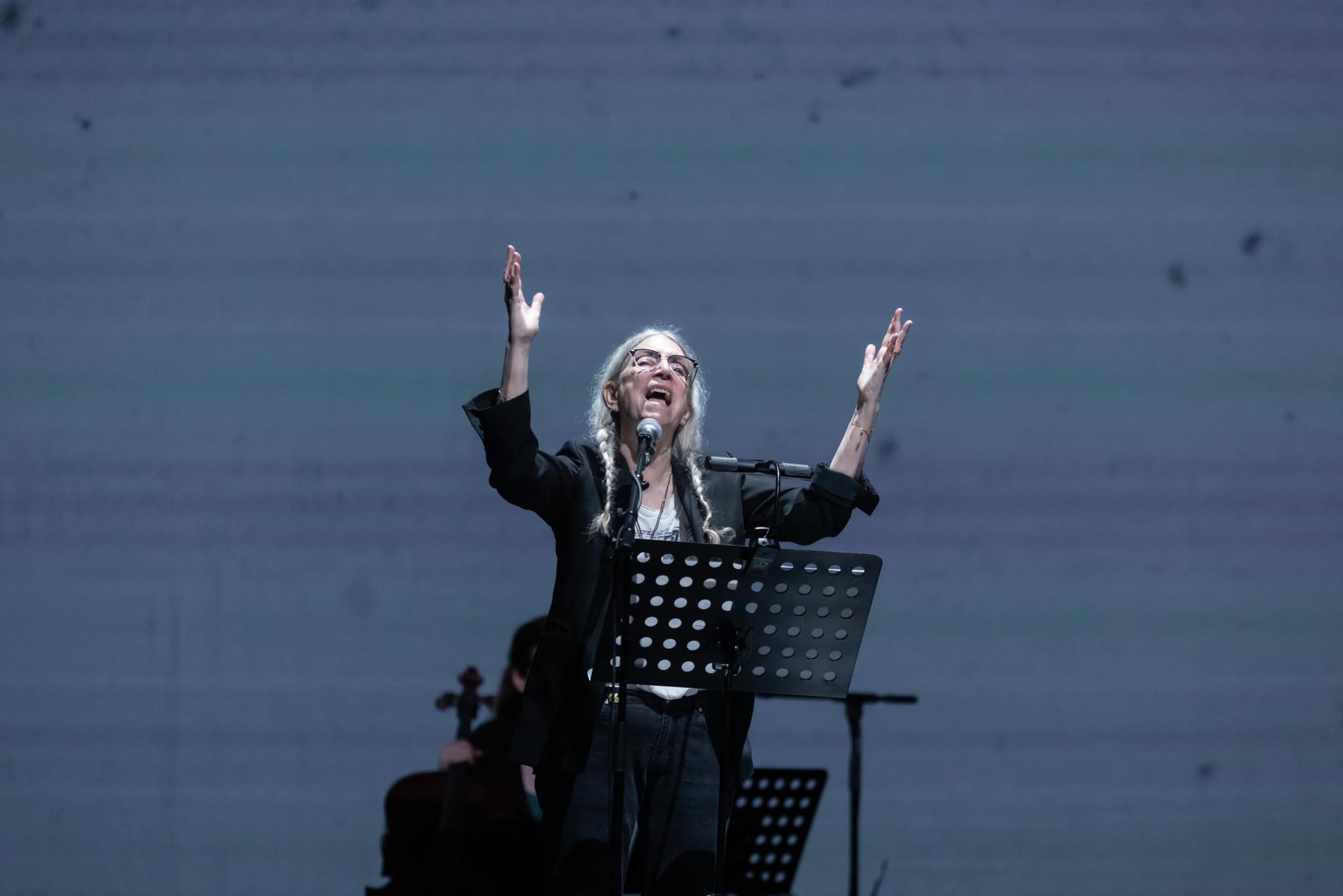 Βρεθήκαμε στην “ποιητική” περφόρμανς της Patti Smith με τη Soundwalk Collective στη Στέγη και σας μεταφέρουμε τις εντυπώσεις μας.