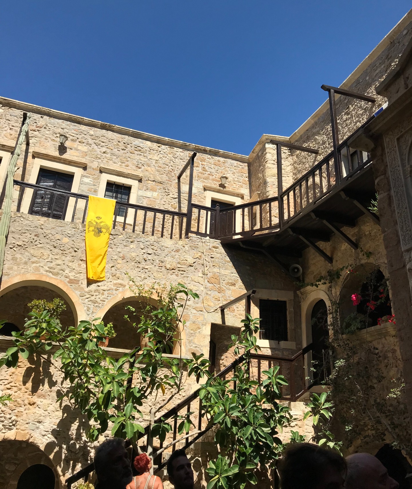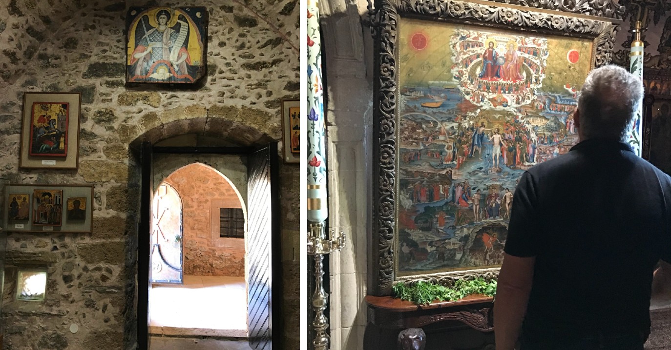 Επισκεφθήκαμε τη Μονή το μεσημέρι προκειμένου να μας ξεναγήσει ο ηγούμενος στο εσωτερικό της και να μας μυήσει στη φιλοσοφία της ζωής “κεκλεισμένων των θυρών”. Η συναυλία του Σταύρου Ξαρχάκου θα λάμβανε χώρα το βράδυ, στον προαύλιο χώρο. Ο ίδιος ο συνθέτης επέλεξε να ακουστεί το “Νυν και Αεί” εκεί και καταλάβαινα απόλυτα το γιατί.