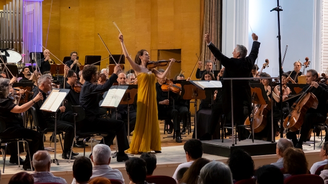 Σολίστ στο βιολί ήταν η κορυφαία Βουλγάρα βιολονίστα Liya Petrova, που ερμήνευσε το συναρπαστικό κοντσέρτο για βιολί του Τσαϊκόφσκι, ενώ στο δεύτερο μέρος του προγράμματος η Κ.Ο.Θ., υπό τη μουσική διεύθυνση του Γιάννη Πουσπουρίκα, παρουσίασε την υπέροχη ‘Συμφωνία του Χριστού’ του Χαρίλαου Περπέσσα, ένα σπάνιο διαμάντι της ελληνικής μουσικής με εκτενείς αναφορές στην Αποκάλυψη του Ιωάννη.