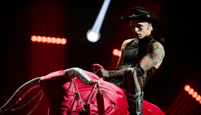 Ο Achille Lauro, που μας θυμίζει αρκετά τον περσινό Νταμιάνο, ερμήνευσε στον Β’ ημιτελικό της Πέμπτης το “Stripper”, κάνοντας ροντέο ημίγυμνος πάνω στη σκηνή και το μόνο βέβαιο είναι πως τράβηξε όλα τα βλέμματα πάνω του.