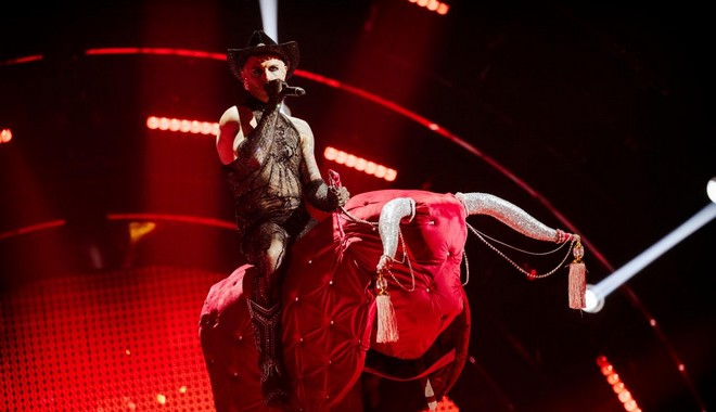 Ο Achille Lauro ερμηνεύει το "Stripper" για λογαριασμό του Σαν Μαρίνο, κάνοντας ροντέο πάνω στη σκηνή της Eurovision.
