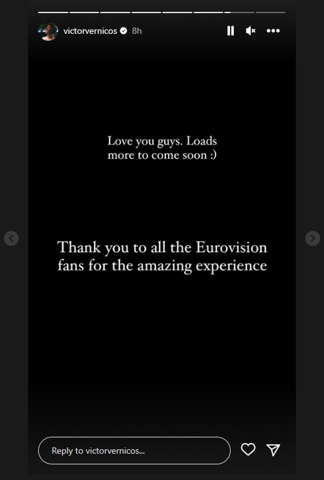 Στο πρώτο του μήνυμα στα social media μετά από τον αποκλεισμό της Ελλάδας, ο Victor Vernicos έγραψε σε story στον προσωπικό του λογαριασμό στο Instagram:
