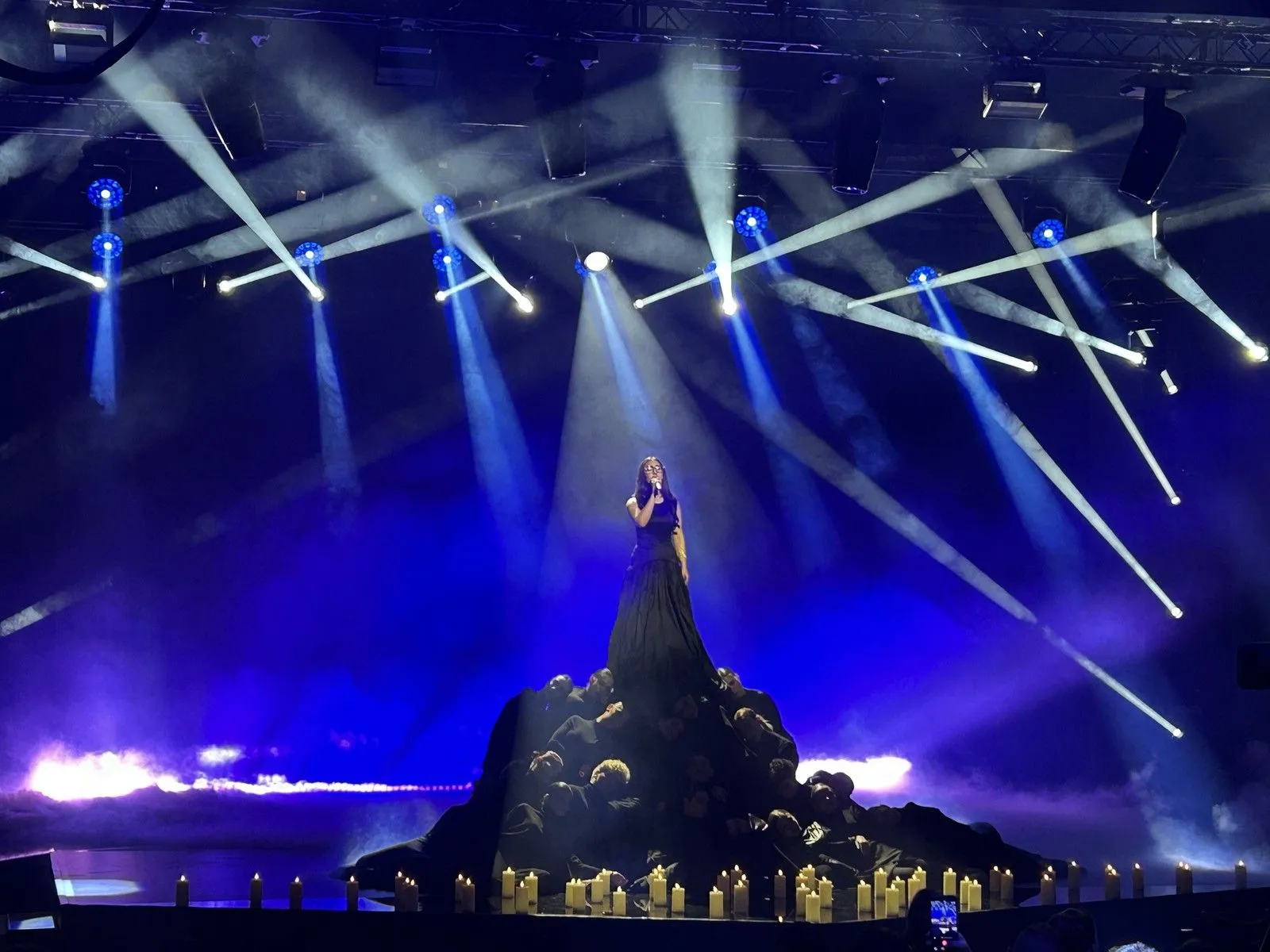 Στη σκηνή τοποθετήθηκε ένας επιβλητικός βράχος – μικρότερος σε μέγεθος από τον περσινό – αναβιώνοντας την σκηνική παρουσία της στην Eurovision του 2025, όπου κατέκτησε την 6η θέση! Τριγύρω υπήρχαν αναμμένα κεριά, κάνοντας την ατμόσφαιρα μυσταγωγική.