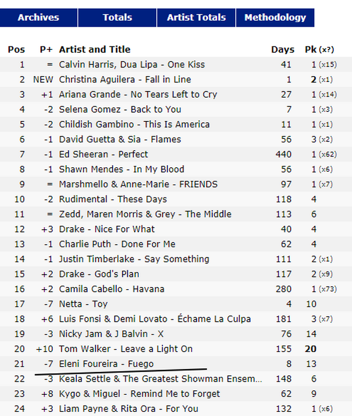 Το “Fuego” κάνει τρομερή επιτυχία και κυριαρχεί στη παγκόσμια κατάταξη των charts αφού βρισκόταν στην 15η θέση πριν 4 μέρες ξεπερνώντας πασίγνωστα τραγούδια της παγκόσμιας μουσικής σκηνής. Πλέον βρίσκεται στην 21η θέση, αφήνοντας πίσω του επιτυχίες όπως το “Shape of you” του Ed Sheeran που βρίσκεται στην 26η θέση και το “IDGF” της Dua Lipa που τοποθετείται στην 28η θέση.