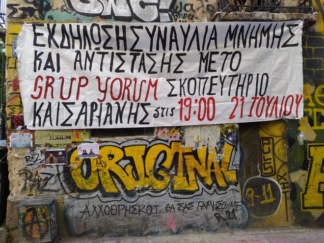 Αυτά ήταν τα λόγια ενός συντρόφου του ακτιβιστικού τουρκικού συγκροτήματος Grup Yorum, που βρέθηκε στον κατάμεστο χώρο του Σκοπευτηρίου της Καισαριανής την Τρίτη (21/7) το βράδυ, την ημέρα που ήταν προγραμματισμένη εκδήλωση αλληλεγγύης στην μπάντα, εξηγώντας εν συντομία γιατί τα μέλη του συγκροτήματος προχώρησαν σε απεργία πείνας.