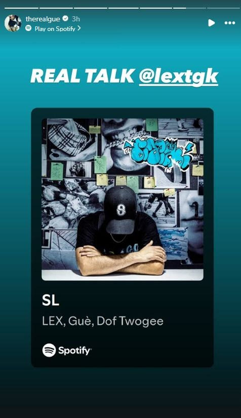 Με story του στον προσωπικό του λογαριασμό στο Instagram o Gué γράφει «πραγματική κουβέντα» και κάνει επισήμανση τον ΛΕΞ.