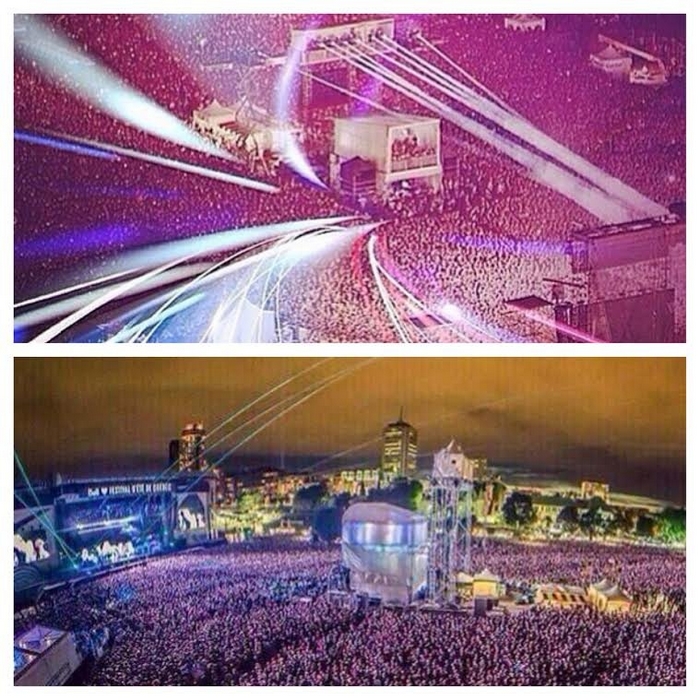 “Αυτές οι μικρές κουκίδες είναι θαυμαστές, αυτή είναι η σκηνή μας και τα φώτα ακτινοβολούν από το κέντρο. Απίστευτο που συγκεντρώθηκαν 90.000 κόσμος! Τι μαγική βραδιά #artraveQuebec” ήταν το μήνυμα με το οποίο συνόδευε τη φωτογραφία.