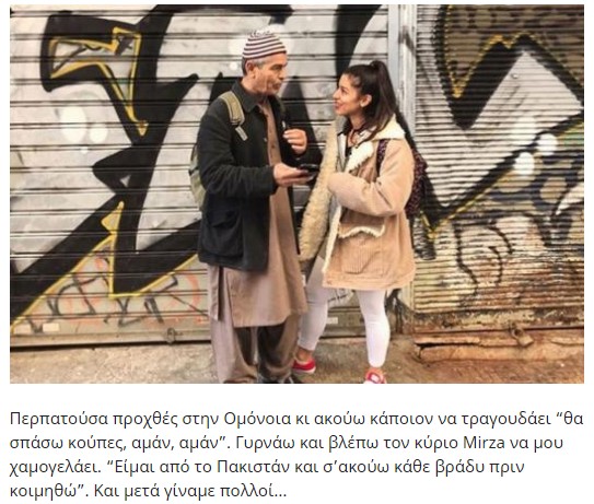 Περπατούσα προχθές στην Ομόνοια κι ακούω κάποιον να τραγουδάει “θα σπάσω κούπες, αμάν, αμάν”. Γυρνάω και βλέπω τον κύριο Mirza να μου χαμογελάει. “Είμαι από το Πακιστάν και σ’ ακούω κάθε βράδυ πριν κοιμηθώ”. Και μετά γίναμε πολλοί…