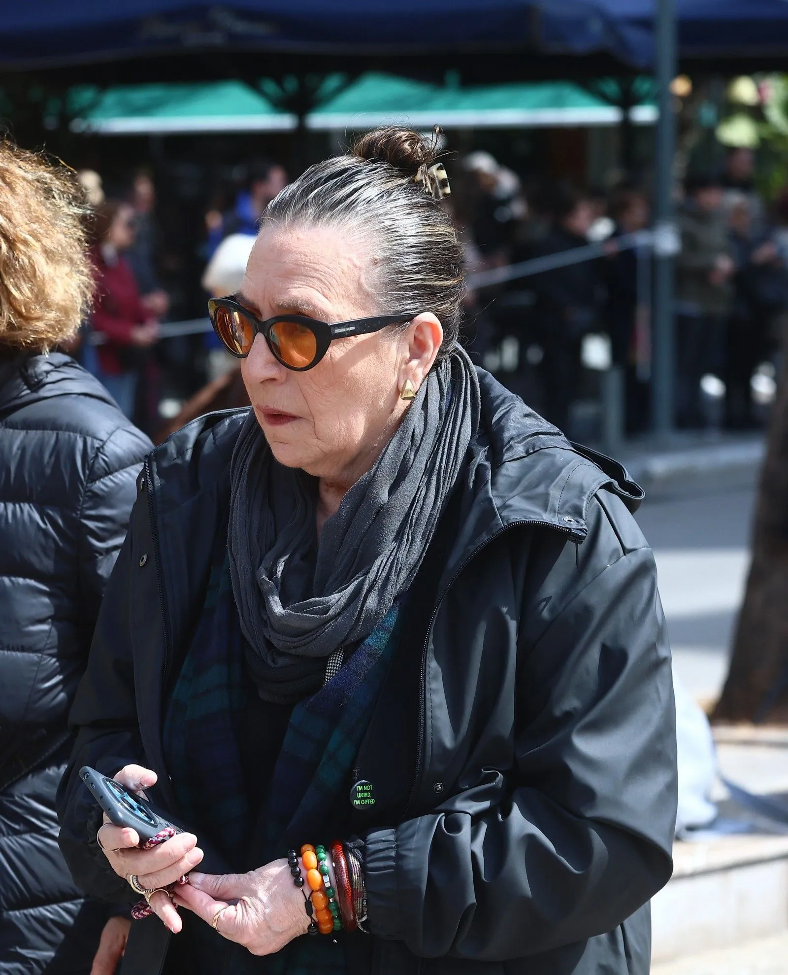 Η σορός της Μαρινέλλας έφτασε συνοδεία της οικογένειάς της, της κόρης της Τζωρτζίνας και των εγγονών της Μελίνας και Δημήτρη, καθώς και στενών της φίλων.