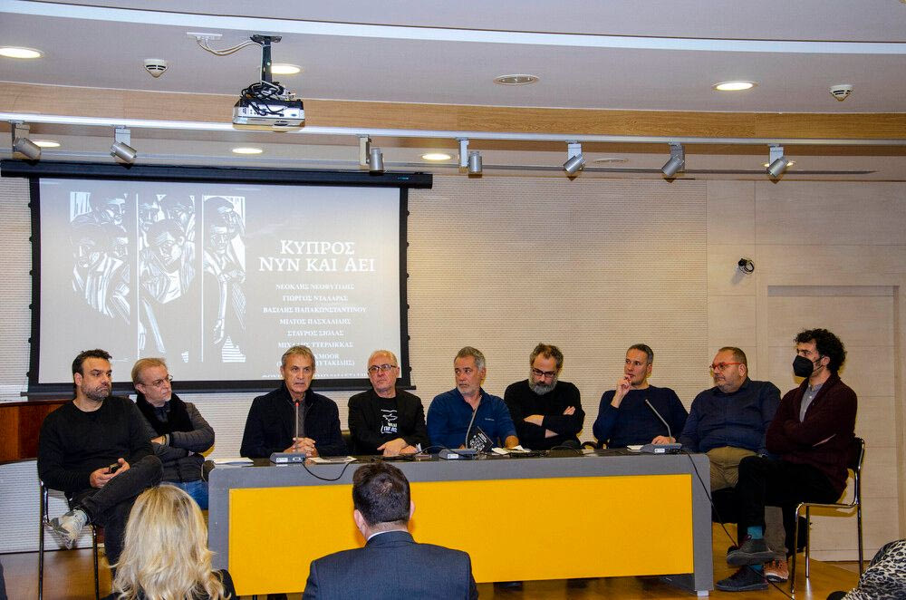 Στο Σπίτι της Κύπρου στο κέντρο της Αθήνας ο σημαντικός ερμηνευτής Γιώργος Νταλάρας και ο σπουδαίος στιχουργός Πόλυς Κυριάκου, καθώς και οι συντελεστές του δίσκου «Κύπρος νυν και αεί» υποδέχθηκαν εκπροσώπους του Τύπου σε μια εκδήλωση που σκοπό είχε να υπογραμμίσει το αίσθημα της δικαιοσύνης.