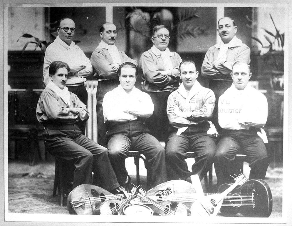 Η εστουδιαντίνα "Τα Πολιτάκια", όπως εμφανίστηκαν στην Αθήνα υπό τη διεύθυνση του Σπύρου Περιστέρη, κατά τη διάρκεια περιοδείας στην Κωνσταντινούπολη, 1930. Αρχείο Κουνάδη