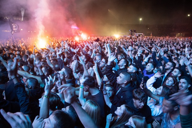 Ο Θεσσαλονικιός ράπερ εμφανίστηκε στη σκηνή λίγο μετά τις 22.00, ραπάροντας τους στίχους από το “Από τους υπονόμους” και πυροδοτώντας ουρλιαχτά γεμάτα ενθουσιασμό, συνθήματα, αλλά και την εμφάνιση των πρώτων καπνογόνων.