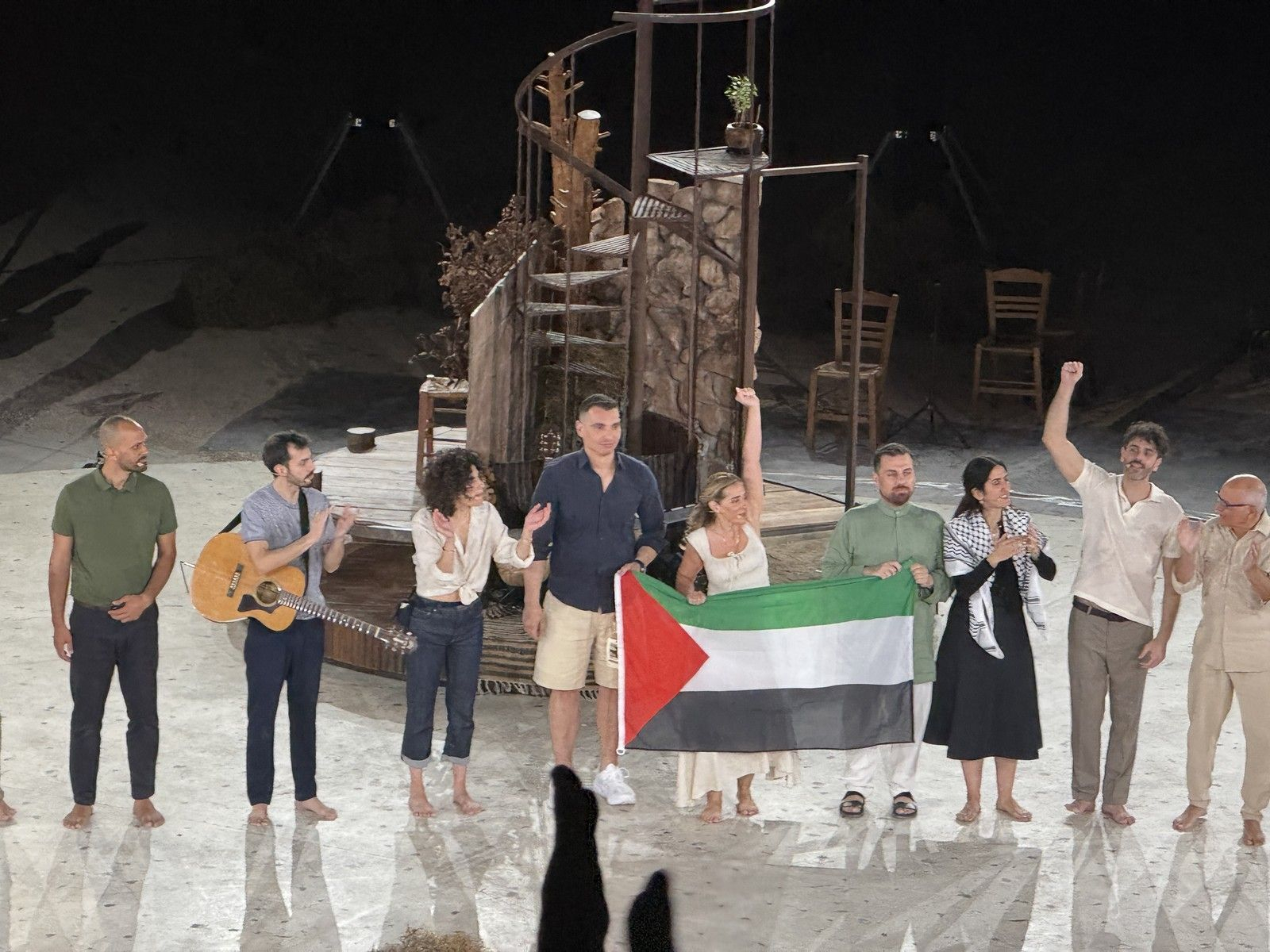 Αργότερα, στο φινάλε της παράστασης και κατά την υπόκλιση των συντελεστών, η ερμηνεύτρια ύψωσε την παλαιστινιακή σημαία και φώναξε μαζί με το κοινό: «Λευτεριά στην Παλαιστίνη».