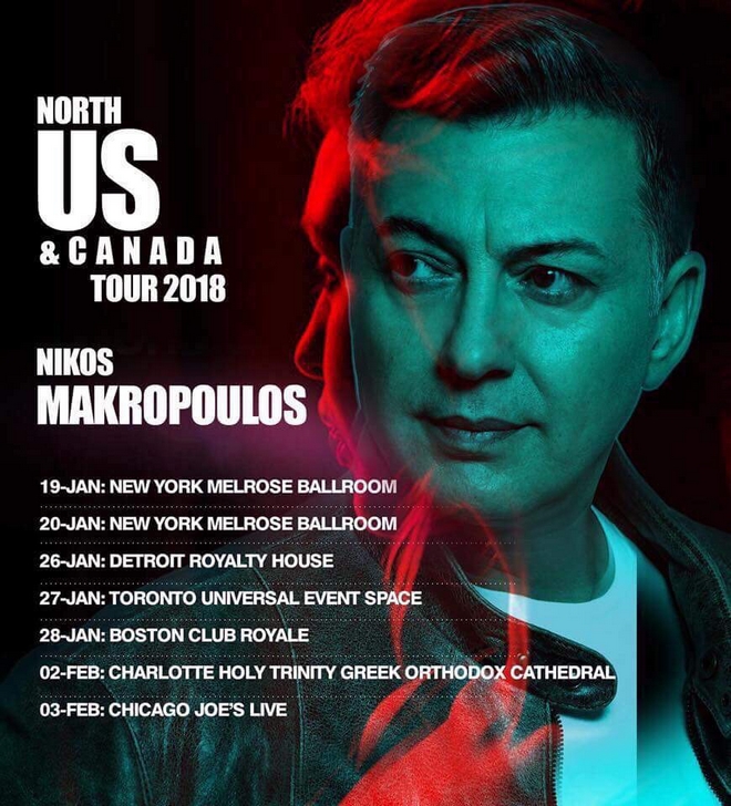 Ακολουθεί το Ντιτρόιτ, το Τορόντο, η Βοστώνη, η Σάρλοτ και το Σικάγο. Παρακάτω δείτε αναλυτικά τις ημερομηνίες των εμφανίσεων του Νίκου Μακρόπουλου.