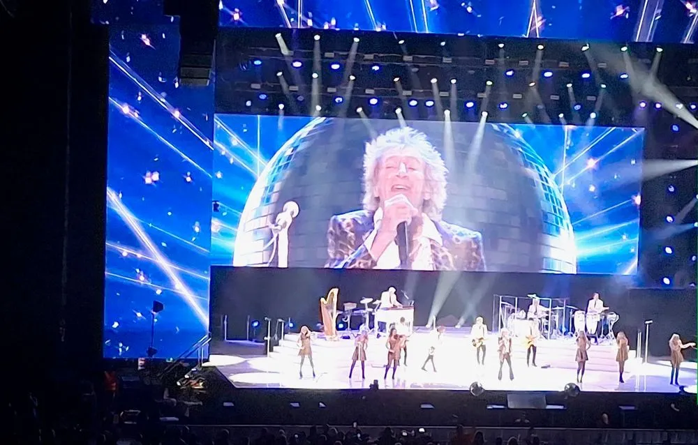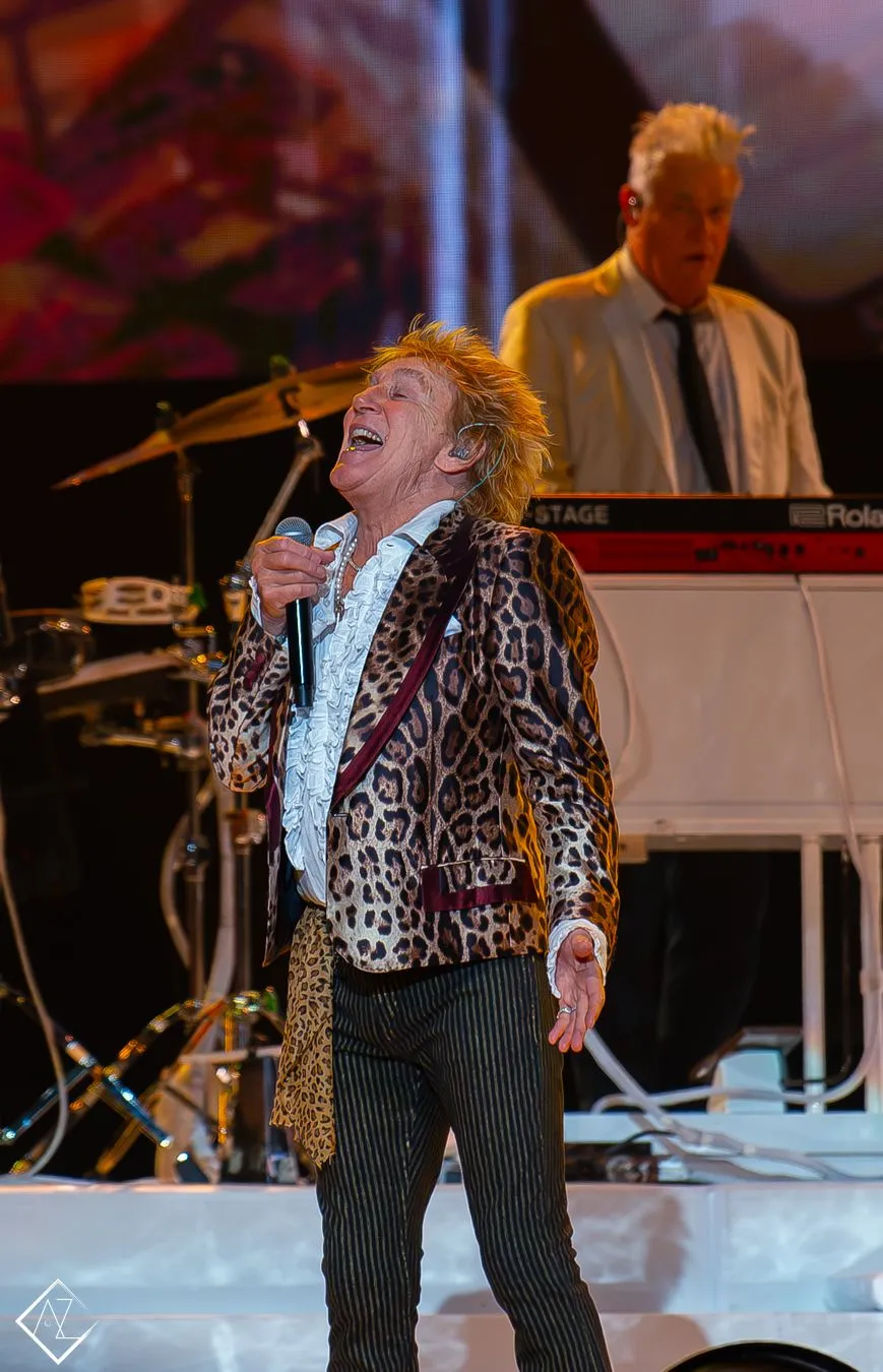 Ο κόσμος ξεσηκώθηκε στο (αυτοαναφορικό) “Forever Young“, στο “The First Cut Is the Deepest” και στο “Maggie May”. Ενδιαμέσως ο Rod άλλαζε και ρούχα, γιατί δεν ξεχνάμε ότι έχει υπάρξει και style icon. Μεταξύ άλλων, τo “Young Turks”, το “Downtown Train” (Tom Waits cover) και το “I Don’t Want to Talk About It” (Crazy Horse cover) συνέχισαν το σετ για να τραγουδήσουμε όλοι όρθιοι το “Baby Jane” και τα πιο σέξι “Da Ya Think I’m Sexy?” και “Hot Legs”.