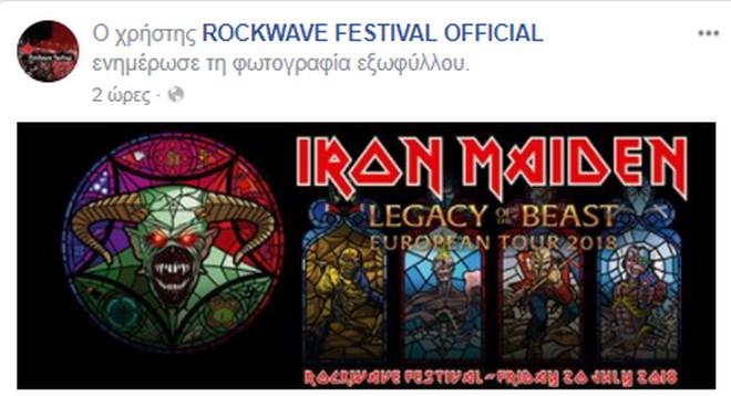 Σε συνέχεια της απόλυτα επιτυχημένης παγκόσμιας περιοδείας τους το 2016-17 για την προήθηση του 16ου studio album The Book Of Souls, οι IRON MAIDEN θα βγουν ξανά στο δρόμο το 2018 με μια σεριά από σόου σε φεστιβάλ και αρένες στην Ευρώπη, με την Legacy Of The Beast World Tour ξεκινώντας από το Ταλίν της Εσθονίας στις 26 Μαϊου και τελειώνοντας στην o2 Arena, Λονδίνο στις 10 Αυγούστου. Παρασκευή 20 Ιουλίου, Rockwave Festival στο Terra Vibe Park.