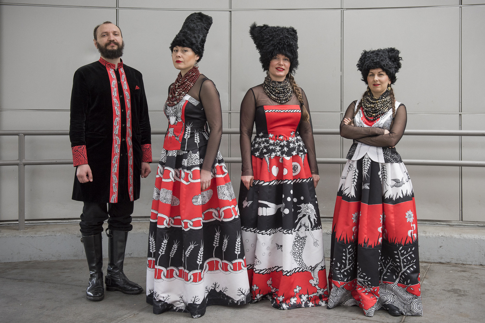 “Μπορούμε να πούμε ότι είναι ένα εθνικό καπέλο, αν θεωρήσουμε ότι εμείς είμαστε το… έθνος. Γενικά δεν έχουμε συναντήσει τέτοιου είδους ψηλά μάλλινα καπέλα στην ουκρανική παράδοση, αλλά και σε κανέναν λαό, από όσο μπορούμε να γνωρίζουμε. Ξεκίνησε σαν μέρος της θεατρικής μας παρουσίασης και είδαμε ότι αρέσει στο κοινό. Τελικά το ενσωματώσαμε σαν “στολή” και μας ξεχωρίζει.