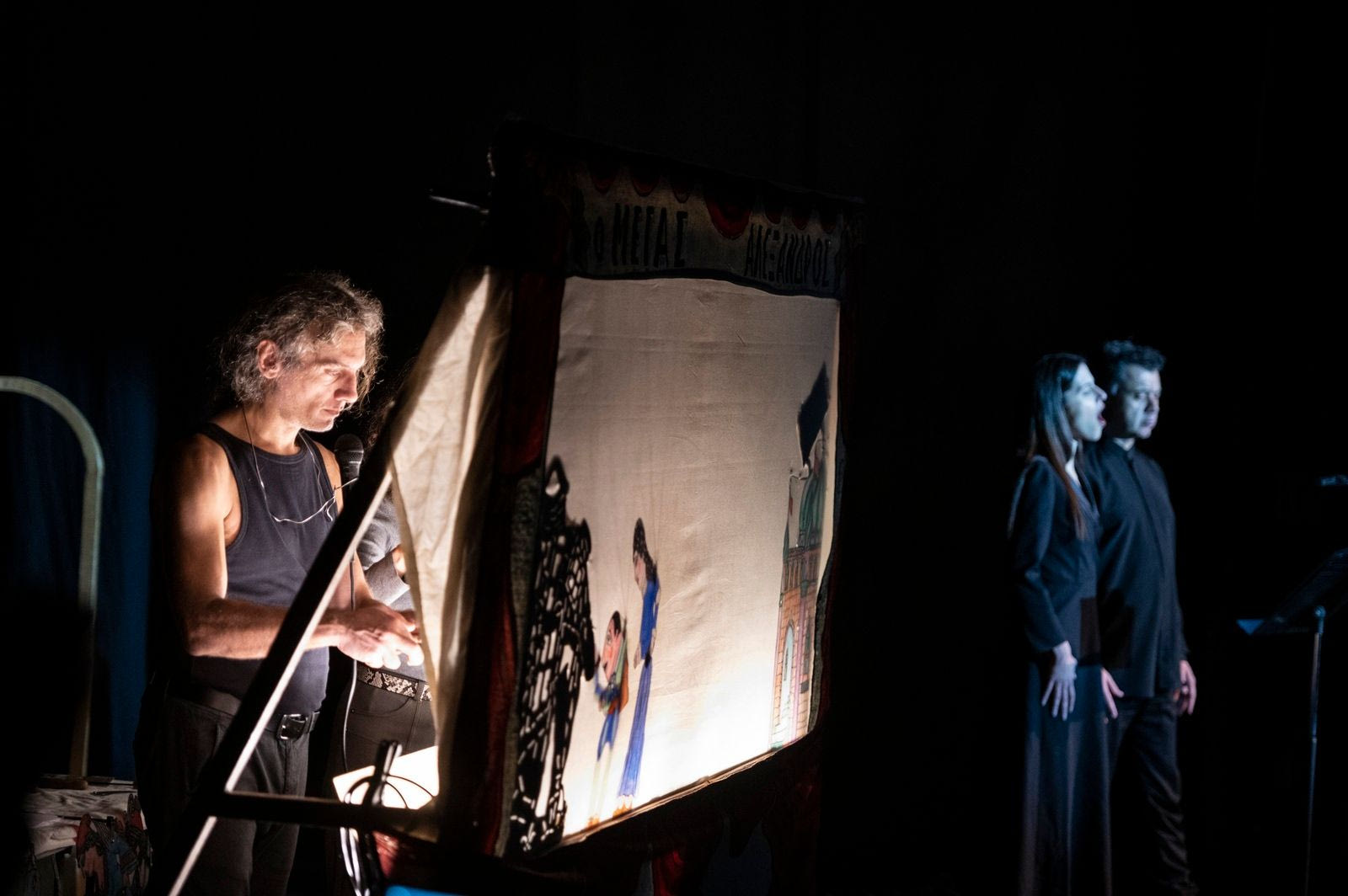 Τρεις λυρικοί ερμηνευτές του έργου “Καραγκιόζης Ριγολέττος” – ο Μάνος Κοκκώνης, ο Γιάννης Σελητσανιώτης και η Μαριλένα Στριφτόμπολα – μας μιλούν για τον μαγικό κόσμο της όπερας σκιών.