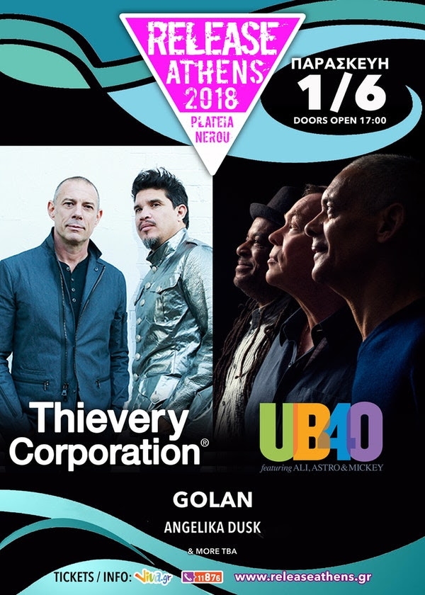 Παρασκευή 1 Ιουνίου / Thievery Corporation, UB40 feat. Ali Campbell + Astro + Mickey, Golan, Angelika Dusk + more tba